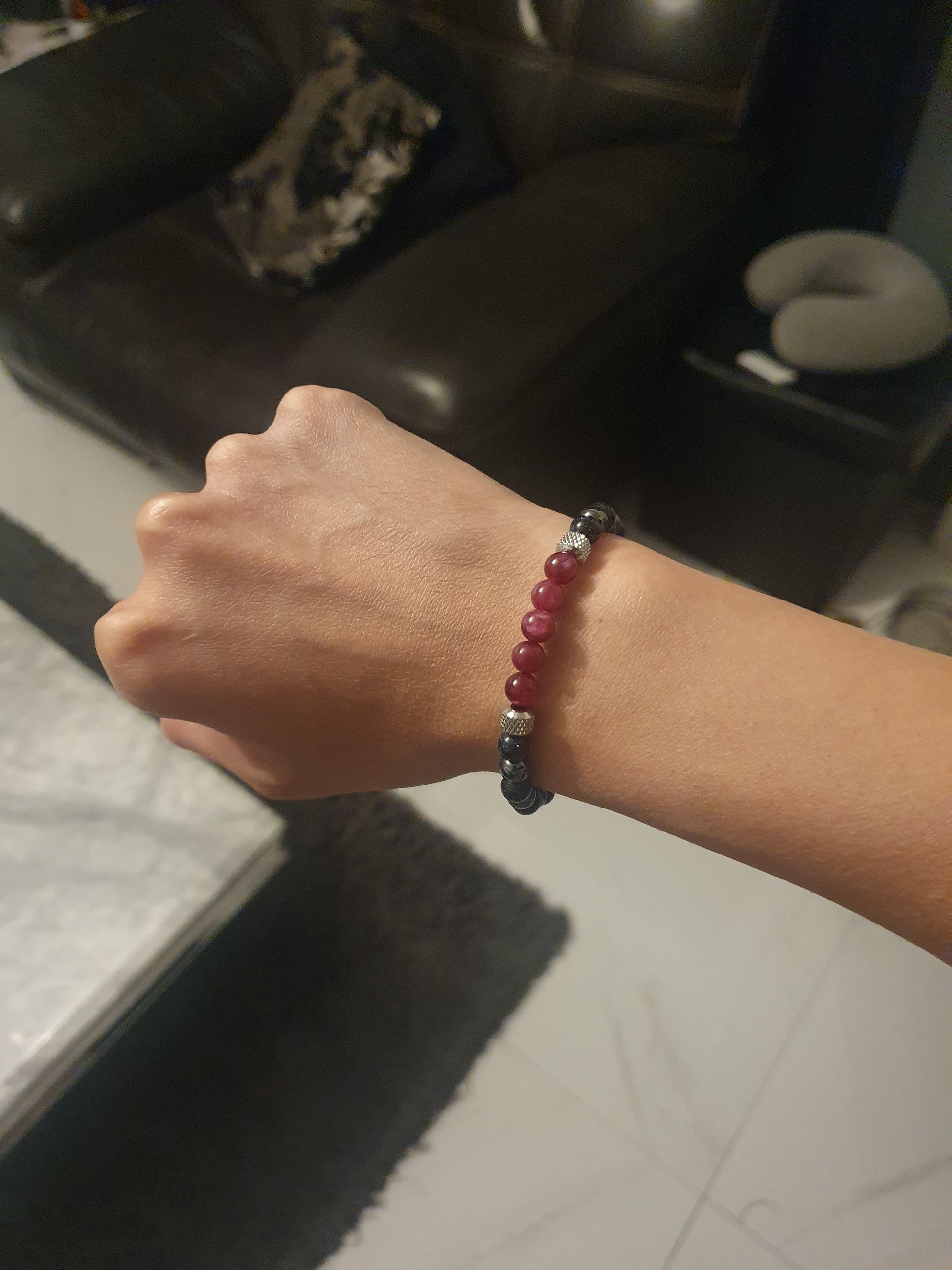 Heartline pulses with quiet intensity, crafted from 6mm deep red garnet stones that shimmer with natural vitality and timeless charm. These garnet beads represent the heart, your emotional core, your courage, and the memory of what drives you forward.